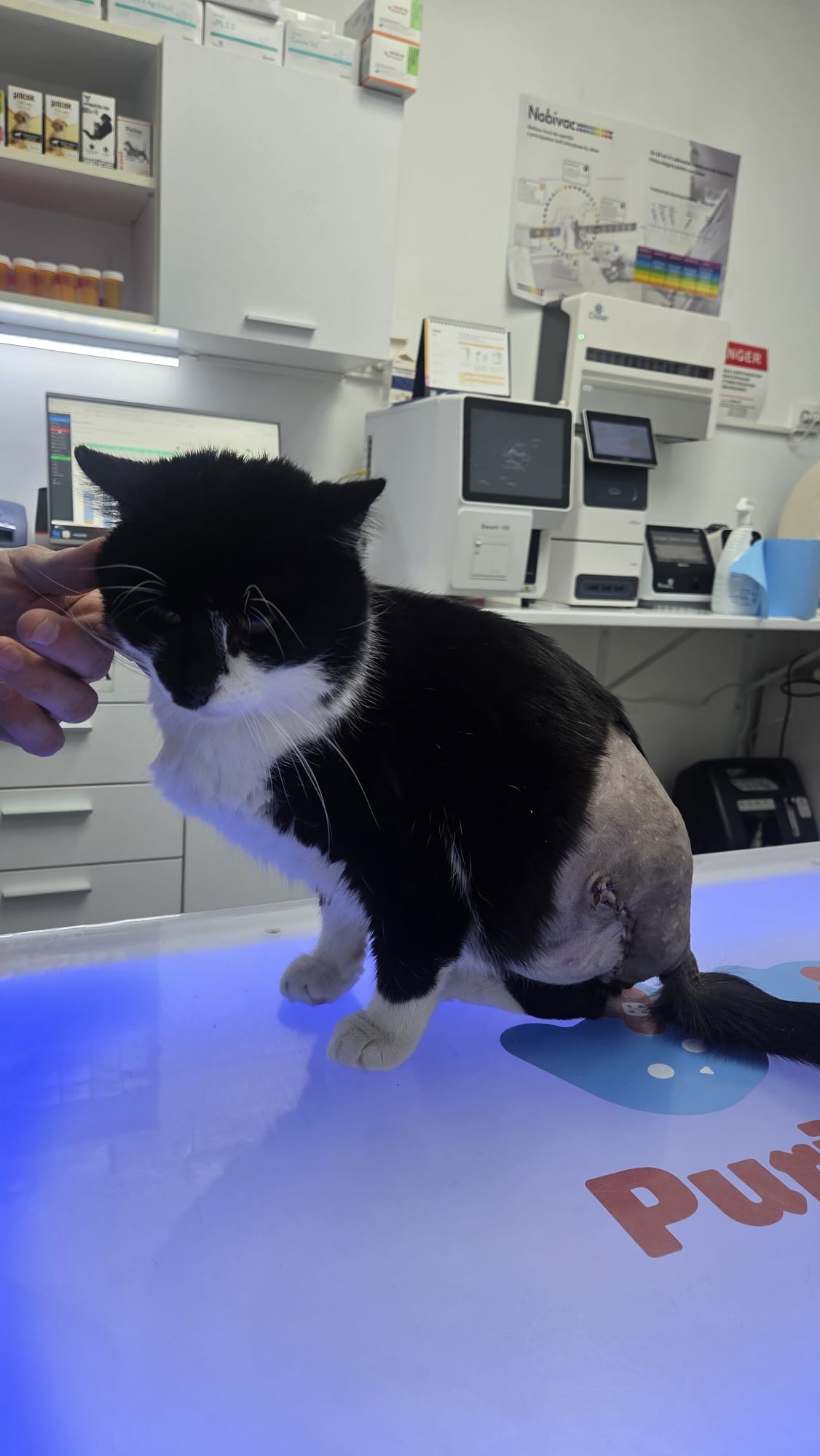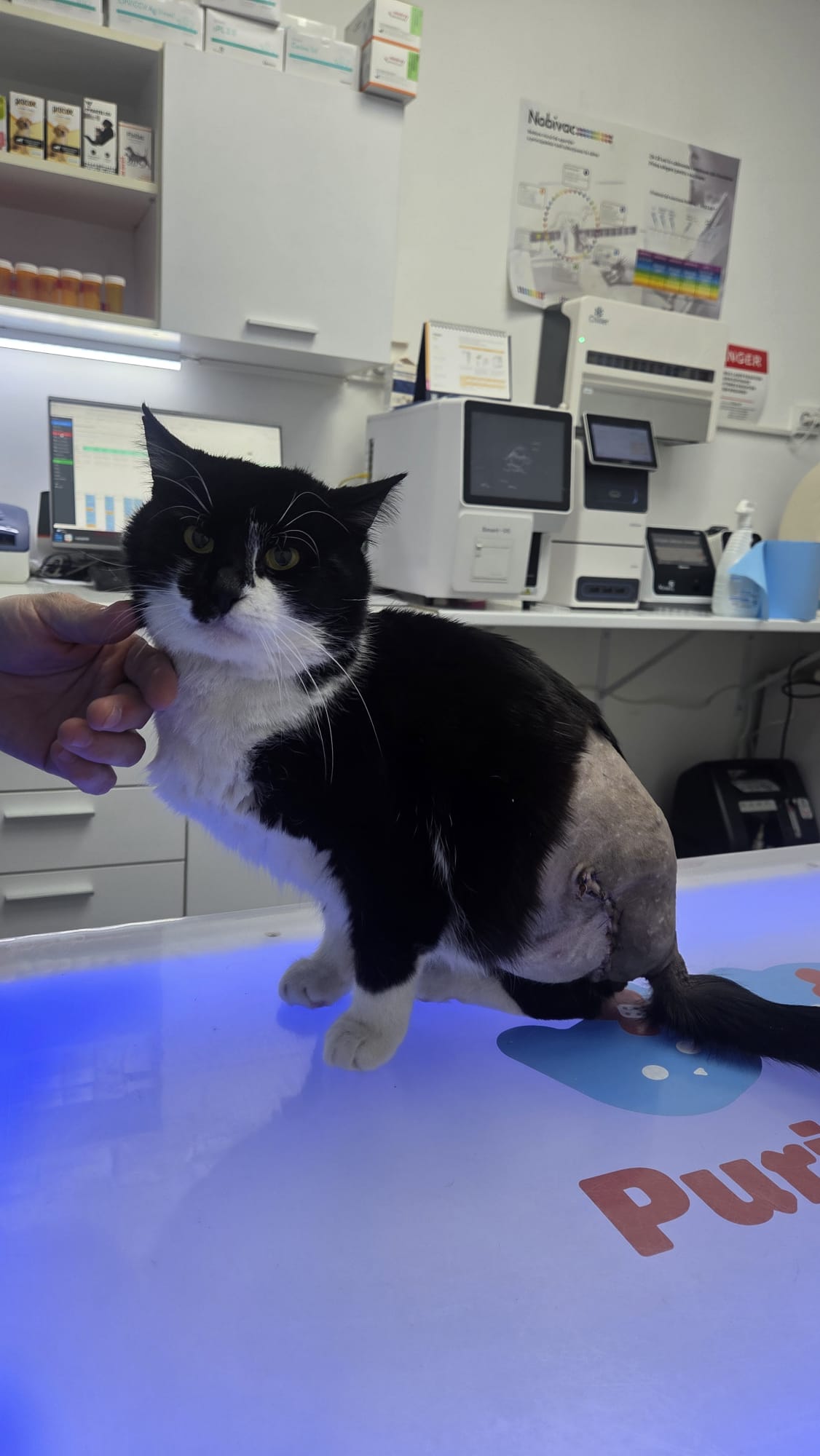 Lilian a fost găsit pe stradă de o doamnă, cu lăbuța umflată și necrozată. Cel mai probabil fusese bătut sau mușcat de alte pisici. A urmat aproximativ o săptămână de tratamente, în încercarea de a-i salva piciorul, însă, din păcate, nu s-a mai putut face nimic. Decizia grea, dar necesară, a fost amputarea lăbuței și castrarea lui.